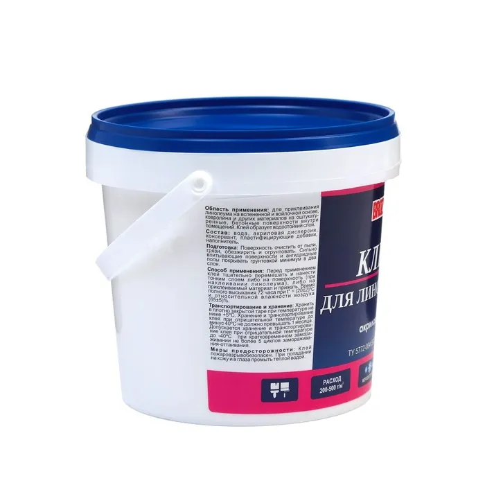 Cпециальный клеящий состав, предназначенный для укладки линолеума на вспененной и войлочной основе. Подходит для приклеивания ковролина и других материалов на различные поверхности, такие как оштукатуренные, бетонные, деревянные и окрашенные масляной краской.