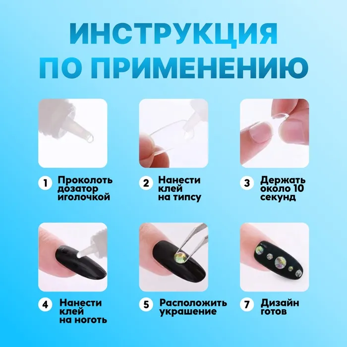 Чтобы правильно использовать клей для ногтей и дизайна, нужно следовать нескольким шагам:
