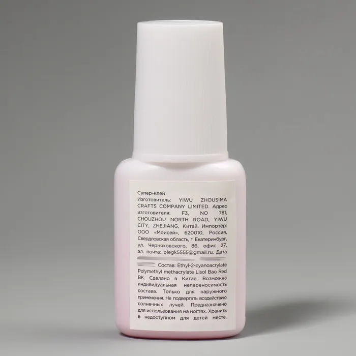 Многофункциональность: Клей подходит для различных типов дизайна — от классических маникюров до креативных декоративных решений.Долговечность: Клей обеспечивает надежное крепление, которое выдерживает повседневные нагрузки и сохраняет ваш маникюр безупречным.Способ применения: Нанесите небольшое количество клея на нужную поверхность, соедините детали и удерживайте в течение нескольких секунд до полного схватывания.