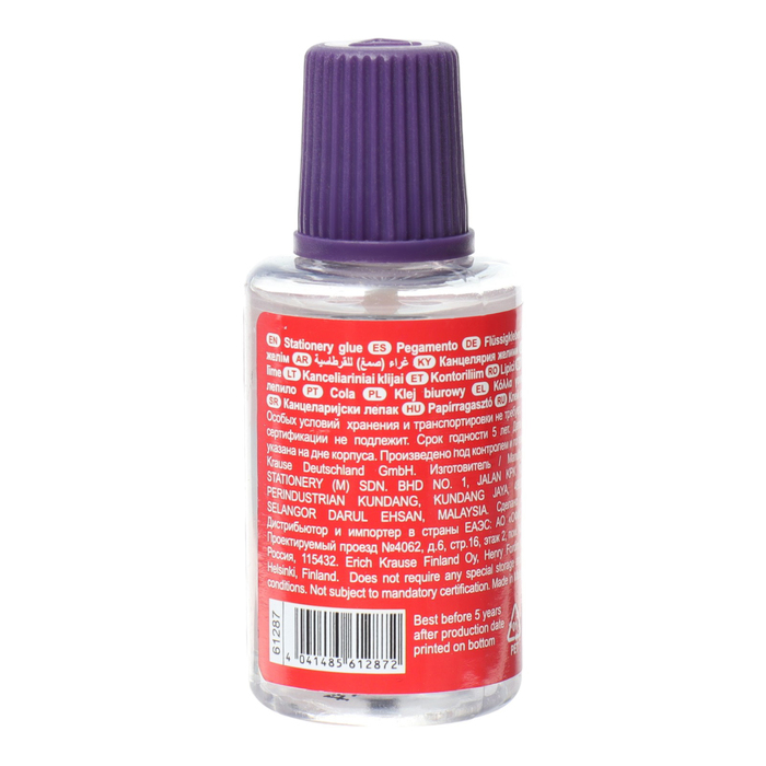 Клей канцелярский во флаконе с кисточкой. Прозрачный. Мягкая кисточка обеспечивает точное и аккуратное нанесение клея. Максимально экономичный расход. Легко смывается водой. Не токсичен. Не содержит растворителя. Морозостоек. Подходит для склеивания бумаги, картона, фотографий, декоративных и поделочных работ.