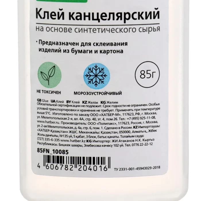 Клей канцелярский 85 грамм Hatber, синтетическая основа, с дозатором — Характеристики