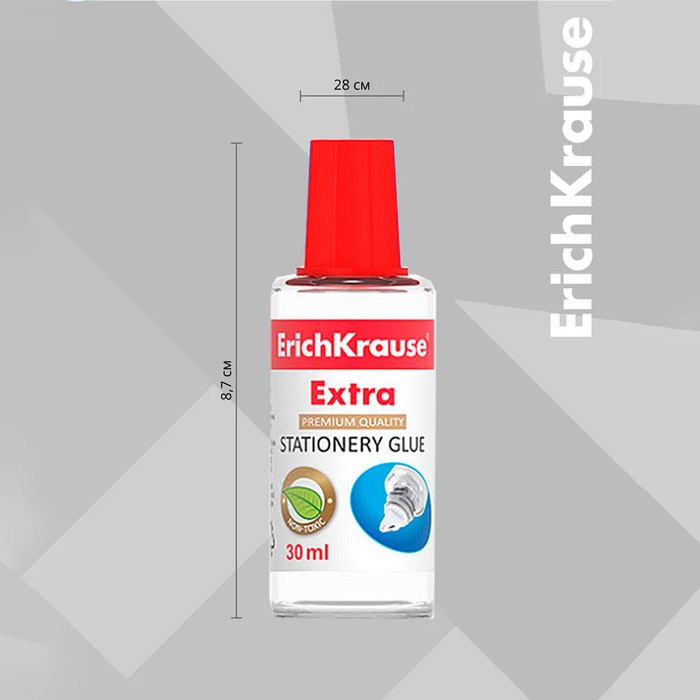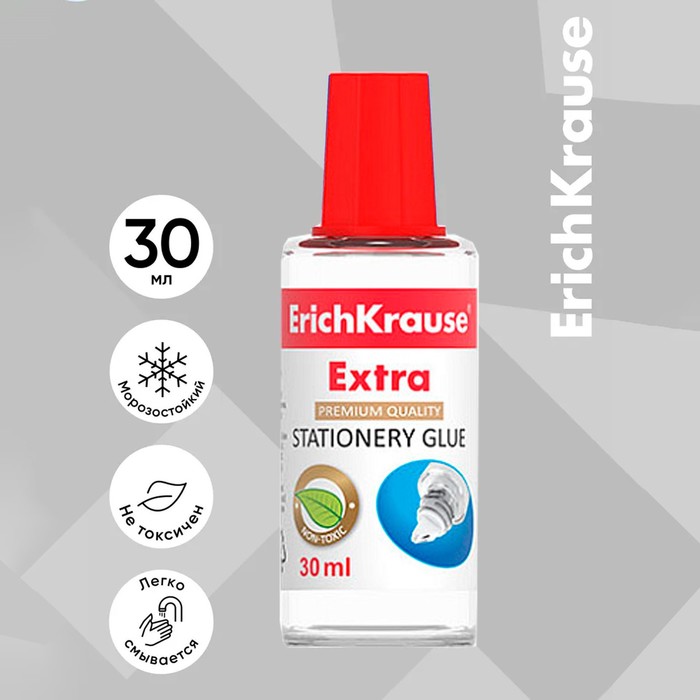 Клей канцелярский ErichKrause, 30 мл, с пластиковым аппликатором, подходит для бумаги, картона и ткани, морозостойкий — Характеристики