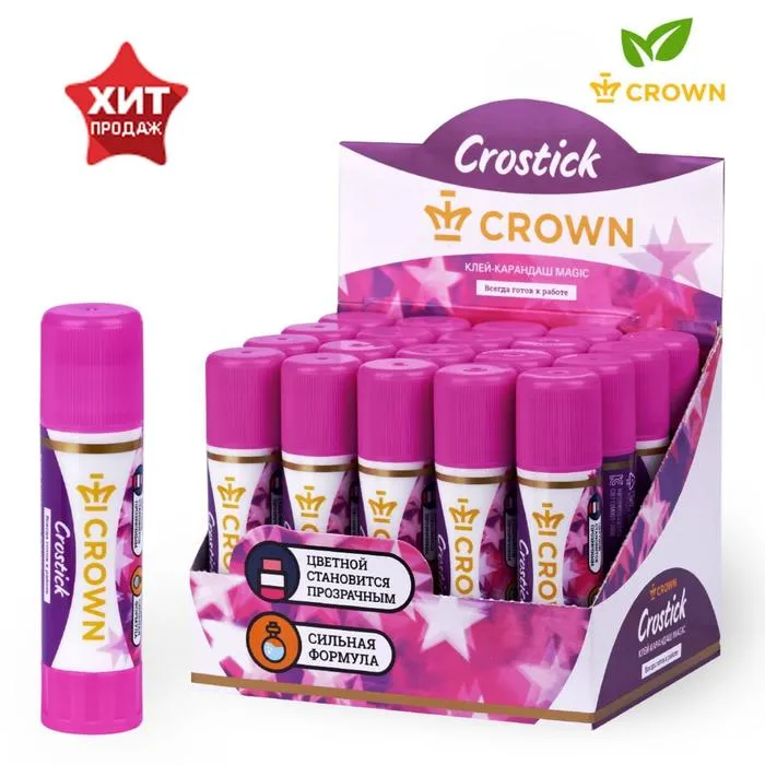 Клей-карандаш Crown Indicator - не имеет запаха, абсолютно безопасный, нетоксичный и легко отстирывается в холодной воде. Клей-карандаш Crown Indicator - отличное решение для детского творчества!
