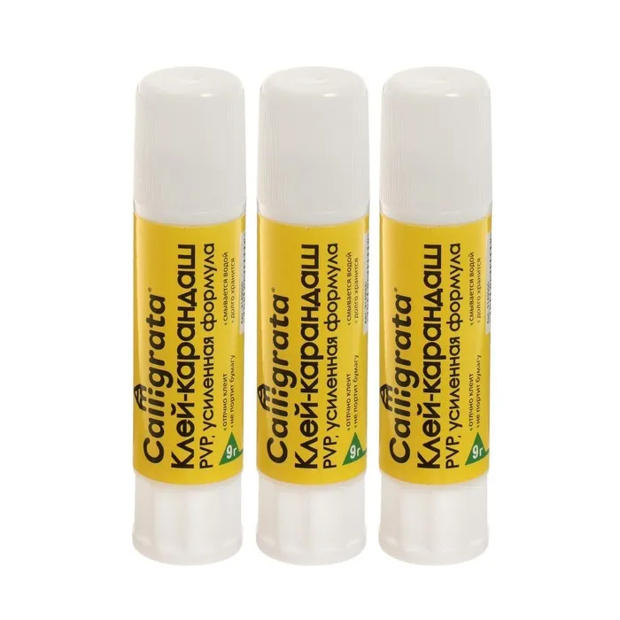 Надёжное решение для склеивания бумаги. Клей-карандаш PVA, набор из 3 штук по 9 г — удобный инструмент для работы в офисе, школе и дома. Простое нанесение и усиленная формула обеспечивают прочное сцепление без лишних усилий.