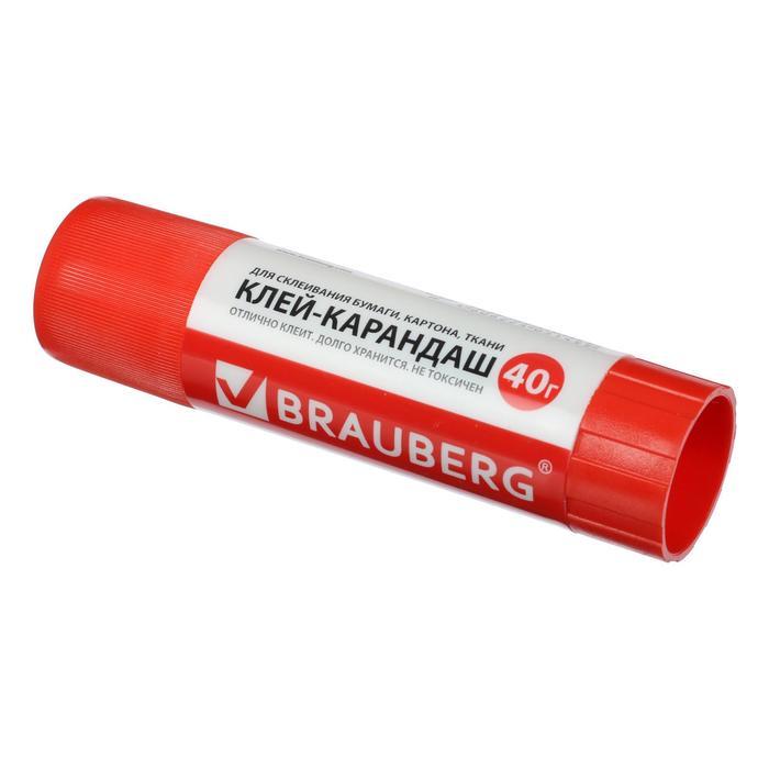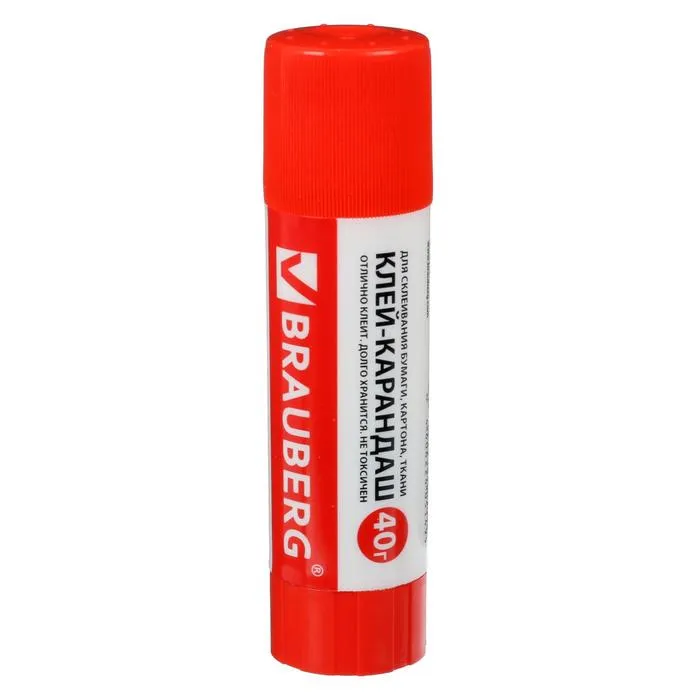 Клей-карандаш BRAUBERG гарантирует надежное склеивание бумаги, картона и фотобумаги. Идеально подходит для офиса, дома и школы. После нанесения высыхает без образования пятен. Не токсичен, не вызывает аллергии и безопасен для здоровья. Легко наносится и распределяется по поверхности, оставляя тонкий и ровный клеевой слой, что позволяет расходовать его экономично. Клей удобен в использовании. Он не пачкает руки, стол, одежду, не попадает на участки бумаги, расположенные возле места склеивания. Обеспечивает быстрое и надежное склеивание. Благодаря большому объему 40 г клея хватит надолго. Увеличенный срок годности — 5 лет.