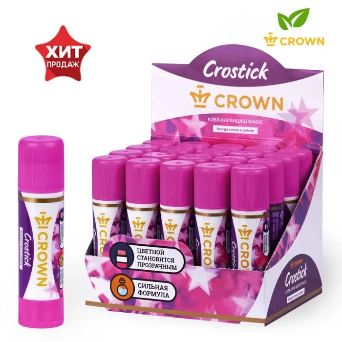 Клей-карандаш, Crown Magic PVP, с цветным индикатором, 8 г — Характеристики