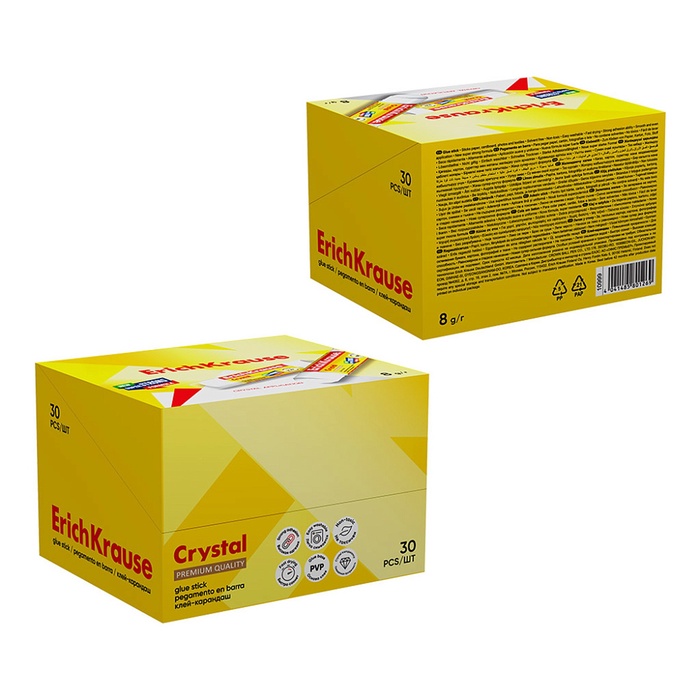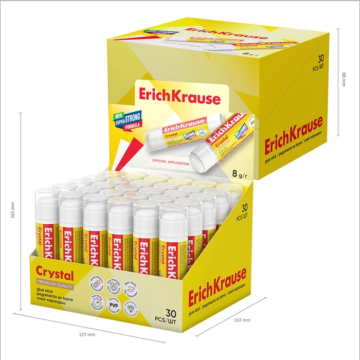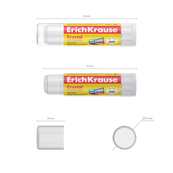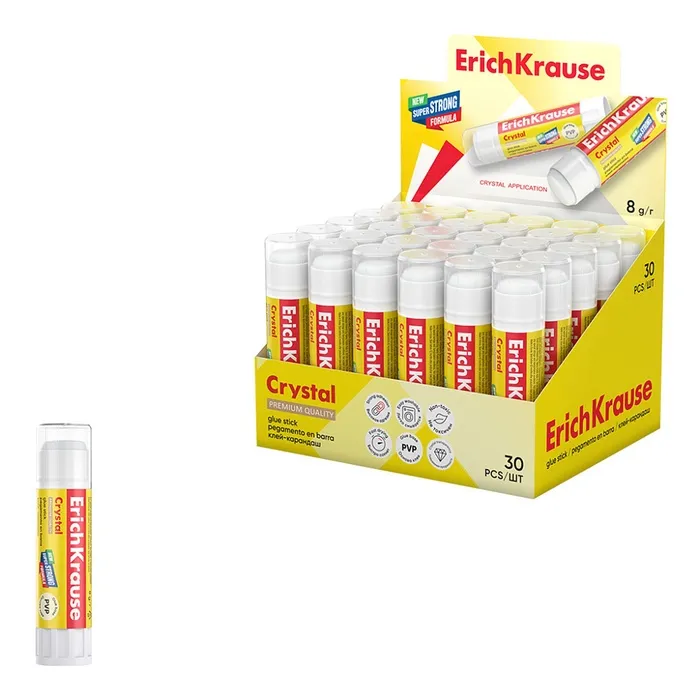 Клeй-карандаш ErichKrause Crystal PVP, 8 г, прозрачный — Характеристики