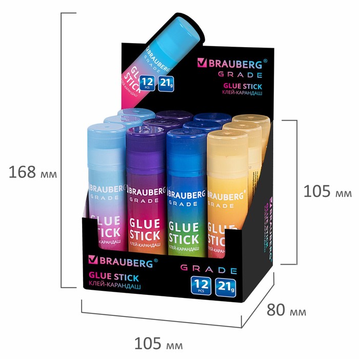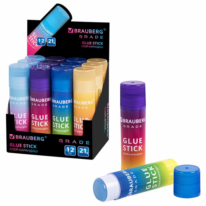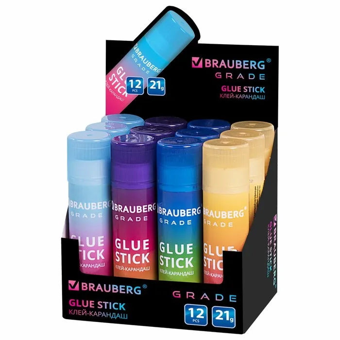 Клей-карандаш PVP 21 г BRAUBERG GRADE, в градиентном корпусе, ассорти 271247 — Характеристики