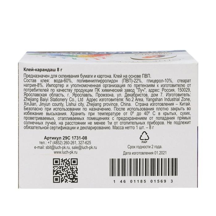 Клей-карандаш PVP 8 г Луч «Классика» — Характеристики
