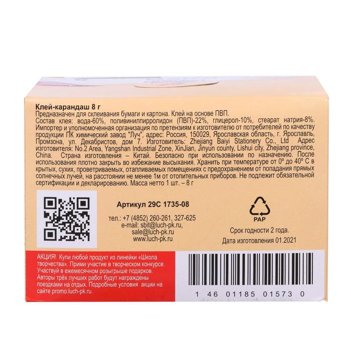 Клей-карандаш PVP 8 г Луч «Школа творчества» — Характеристики