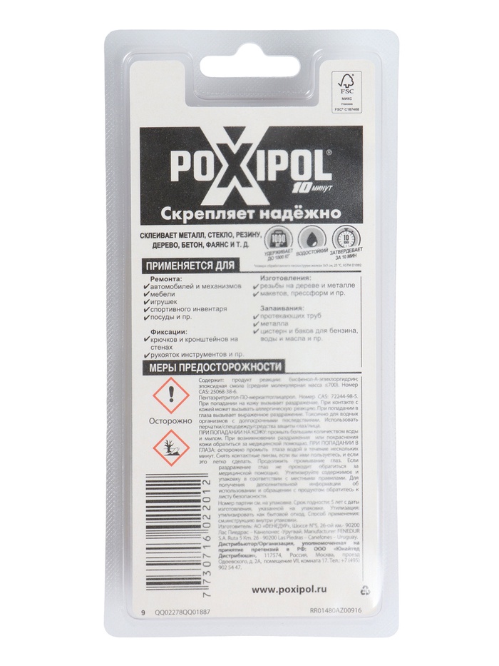 Двухкомпонентное клеящее вещество, легкое в применении и использовании. Склеивает самые разнообразные материалы: металл, бетон, фаянс, дерево, мрамор, пластмассу, стекло, железобетон, фиброцемент, керамику, гранит, фарфор. Благодаря своей прочности и долговечности, этот клей идеально подходит для использования в домашнем ремонте, в мастерской, автомобиле, на работе, для хобби и разнообразных поделок.