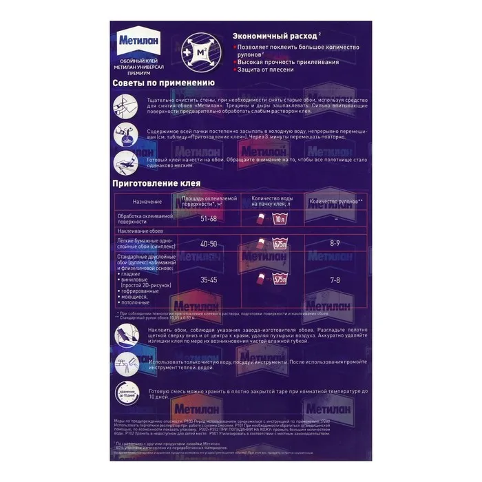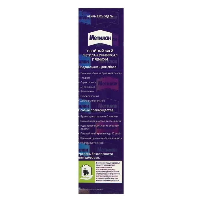 Обойный клей от проверенного производителя — это залог хорошего ремонта. Metylan предназначен для всех видов бумажных обоев: гладких, структурных, гофрированных, виниловых и других. Одной пачки достаточно для наклеивания 8‒10 рулонов.