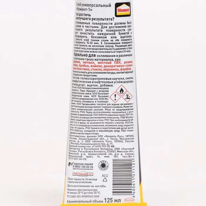 Клей Момент-1 универсальный 125мл бокс 6 шт — Характеристики