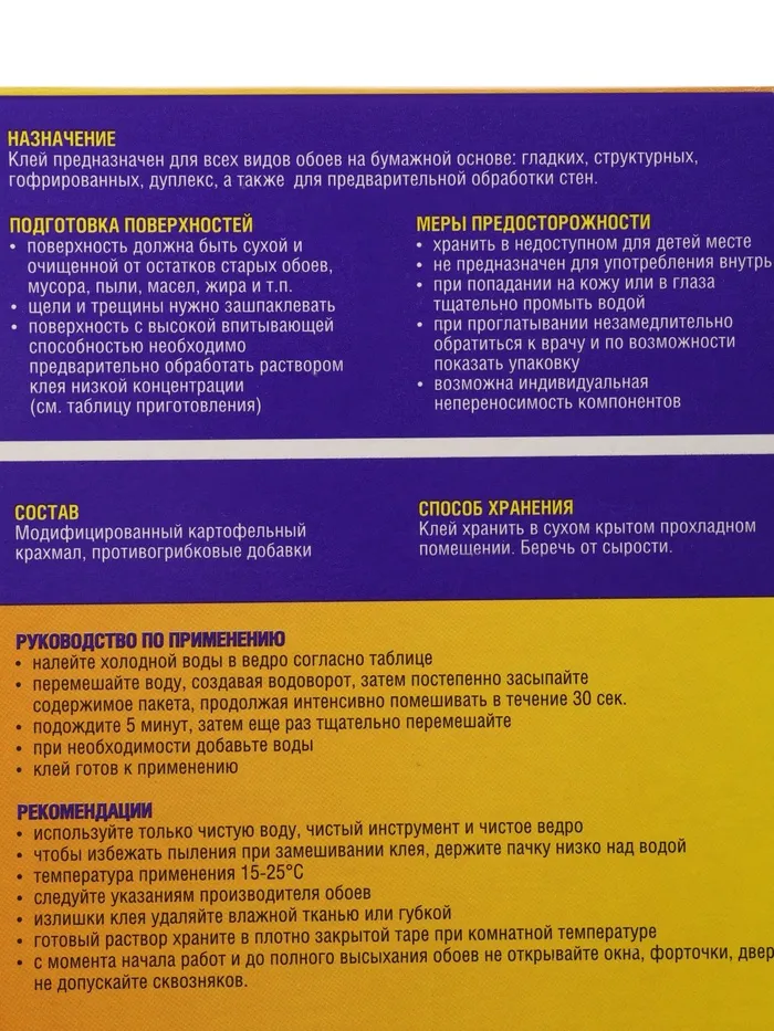 Клей обойный Quality, универсальный, коробка, 200 г — Характеристики