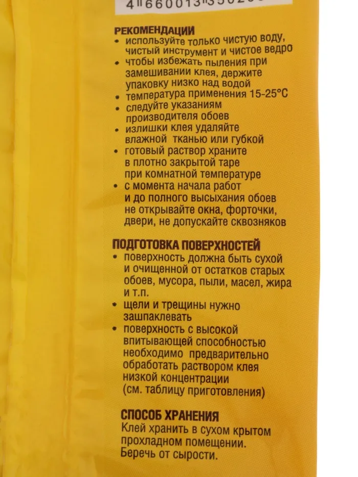 Клей обойный Quality, универсальный, мягкая упаковка, 200 г — Характеристики