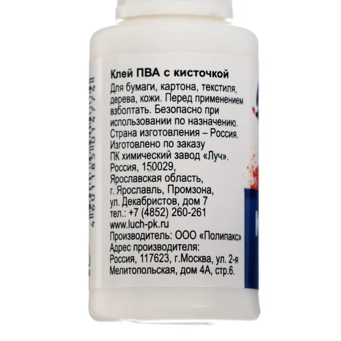 Клей ПВА, 20 г с кисточкой, «Луч» — Характеристики