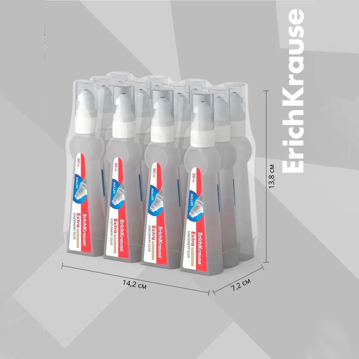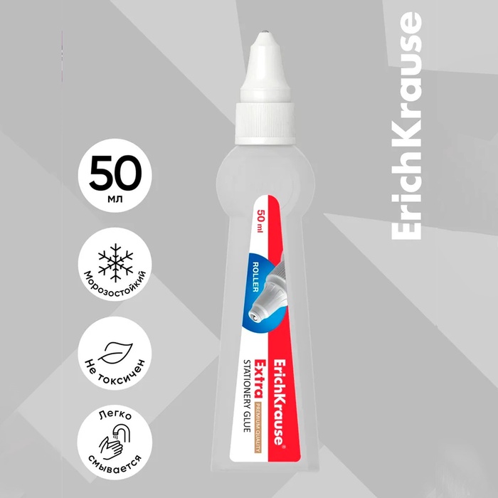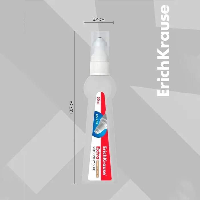 Клей-роллер канцелярский ErichKrause, 50 мл, с роликовым аппликатором, подходит для бумаги, картона и ткани, морозостойкий — Характеристики