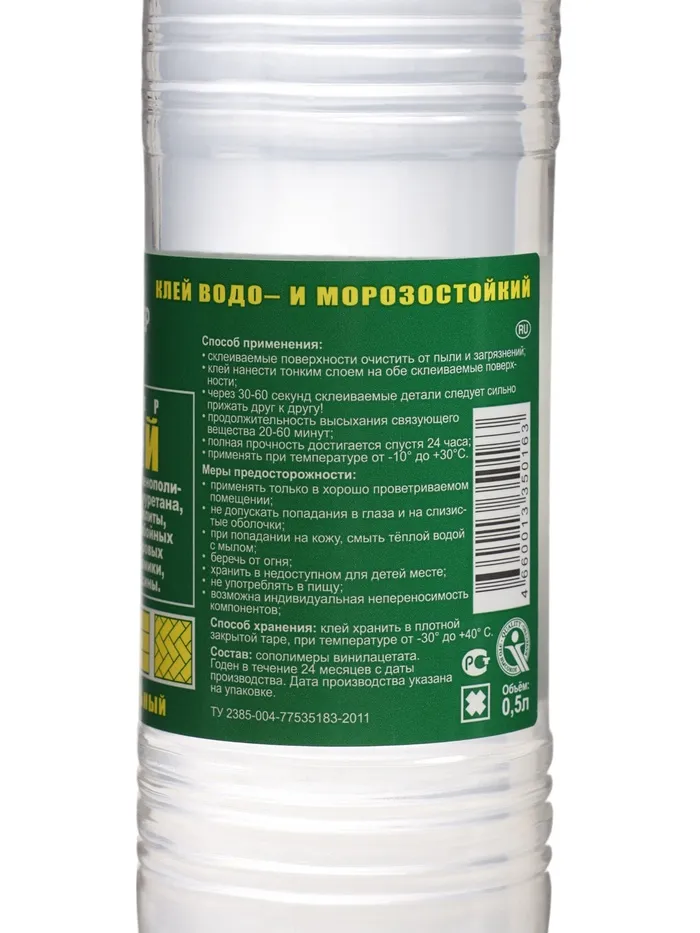 - Вместительная тара 500 мл: Объема хватает на масштабные проекты — монтаж панелей, укладку плитки, столярные работы. Снижается стоимость миллилитра при покупке.