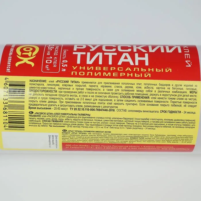 Клей универсальный полимерный РУССКИЙ ТИТАН 0.5 л — Характеристики