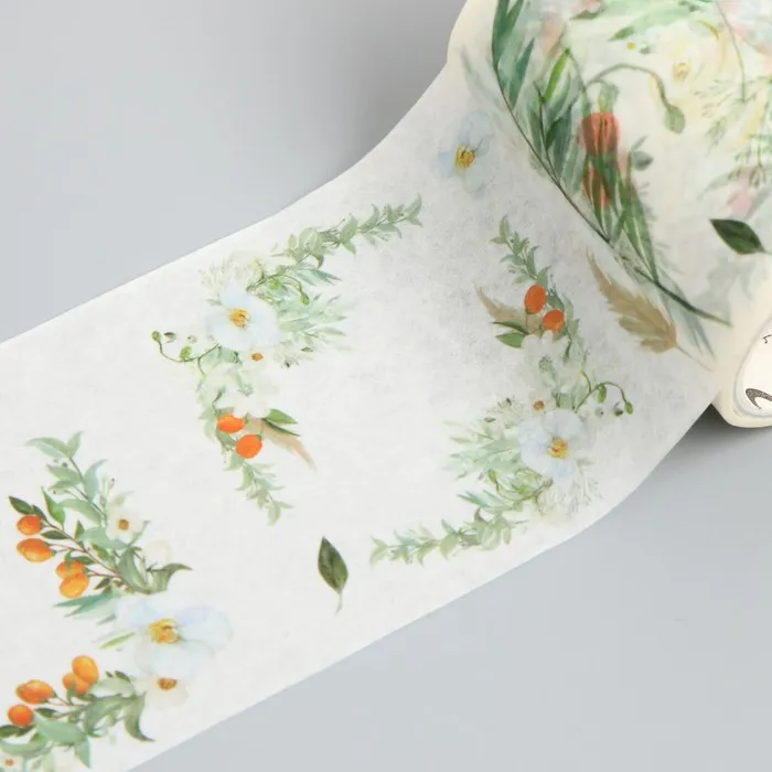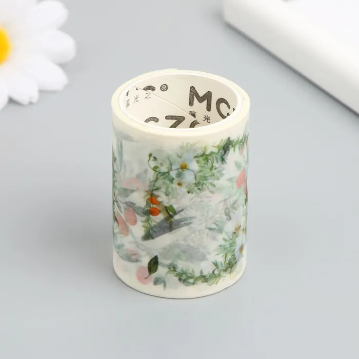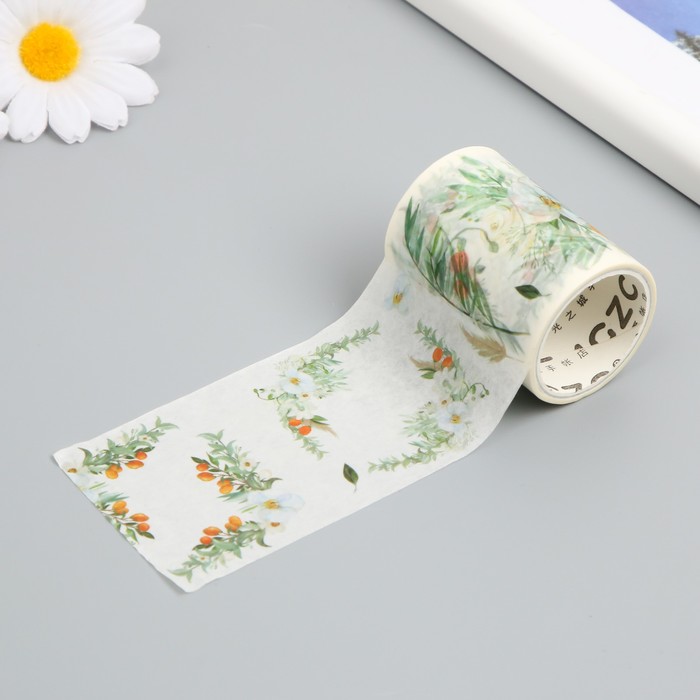 Клейкая лента бумага «Бело-оранжевые цветы», ш. 5.4 см, намотка 3 м, 5.4×3.8×3.8 см — Характеристики