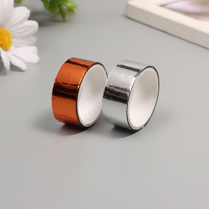 Клейкая лента декоративная пластик «Металлик. Серебро, бронза», набор 2 шт., 1.5 см, дл. 3 м