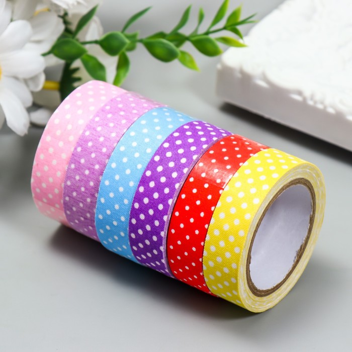 Клейкая лента декоративная текстиль «Горох на ярком», 1.5 см, дл. 4 м, МИКС — Характеристики