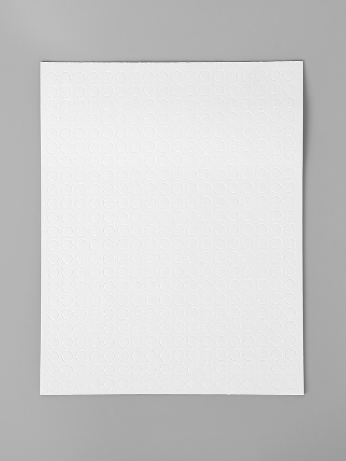 Клейкая лента двухсторонняя «Круглый белый» диаметр 1 см на листе 494 шт. 29.5×25 см