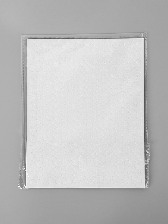 Клейкая лента двухсторонняя "Круглый белый" диаметр 0,8 см на листе 374 шт 25х19,5 см