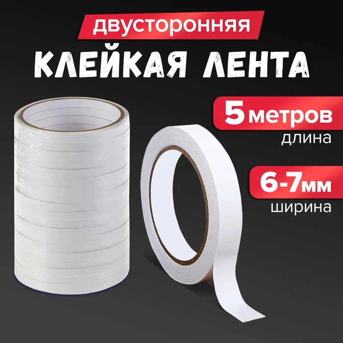 Клейкая лента двусторонняя 6-7 мм × 5 м — Характеристики