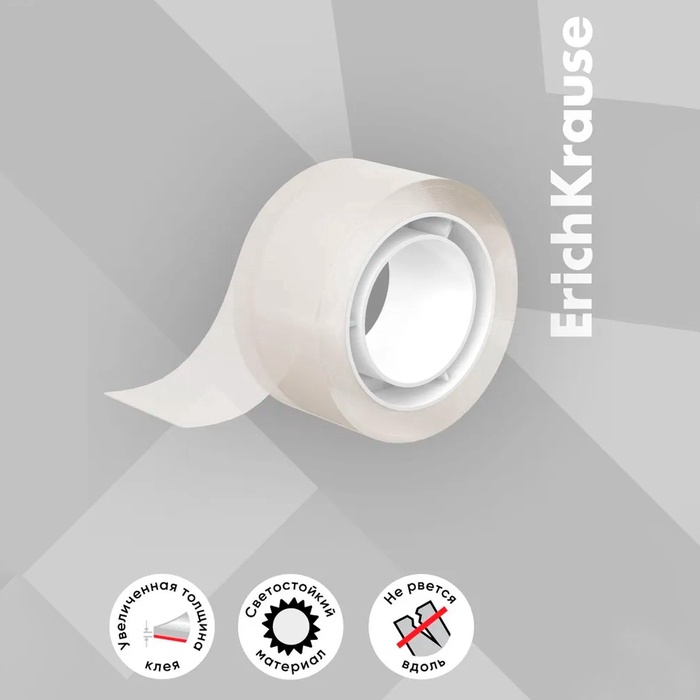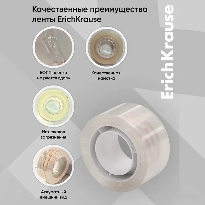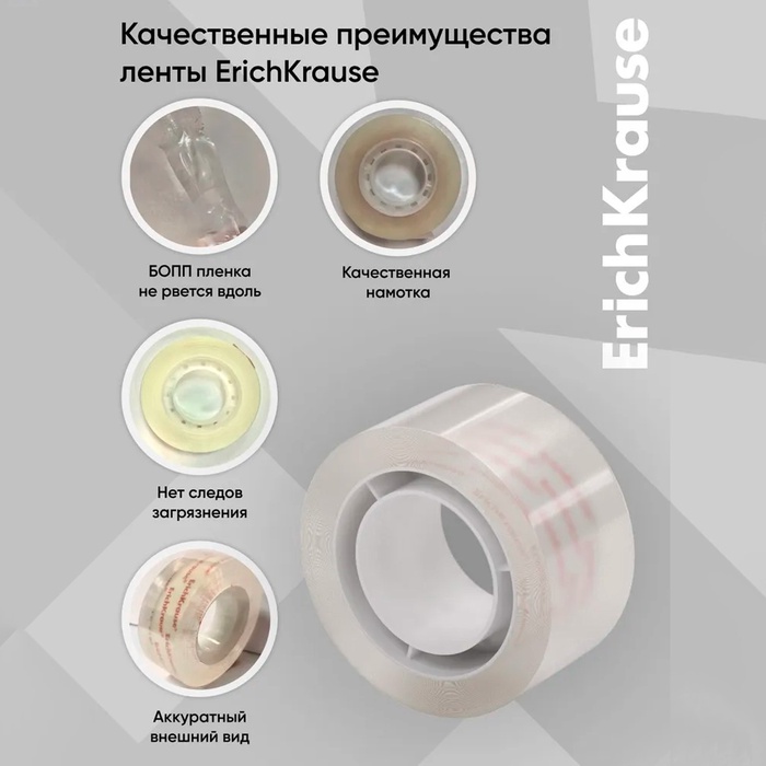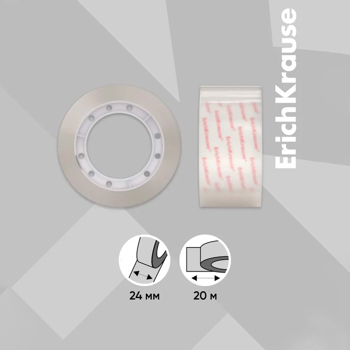 Клейкая лента канцелярская, 24 мм х 20 метра, ErichKrause Clear, прозрачная, в пленке, цена за 1шт. — Характеристики