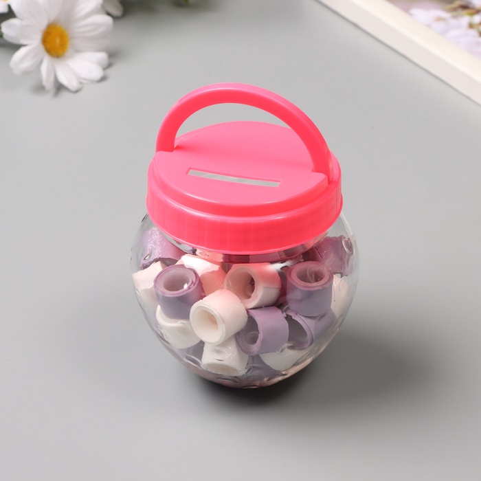 Клейкая лента пластик в банке «Белый и сирень», набор 40 шт., 1.2 см, дл. 0.9 м, 7×7×9 см