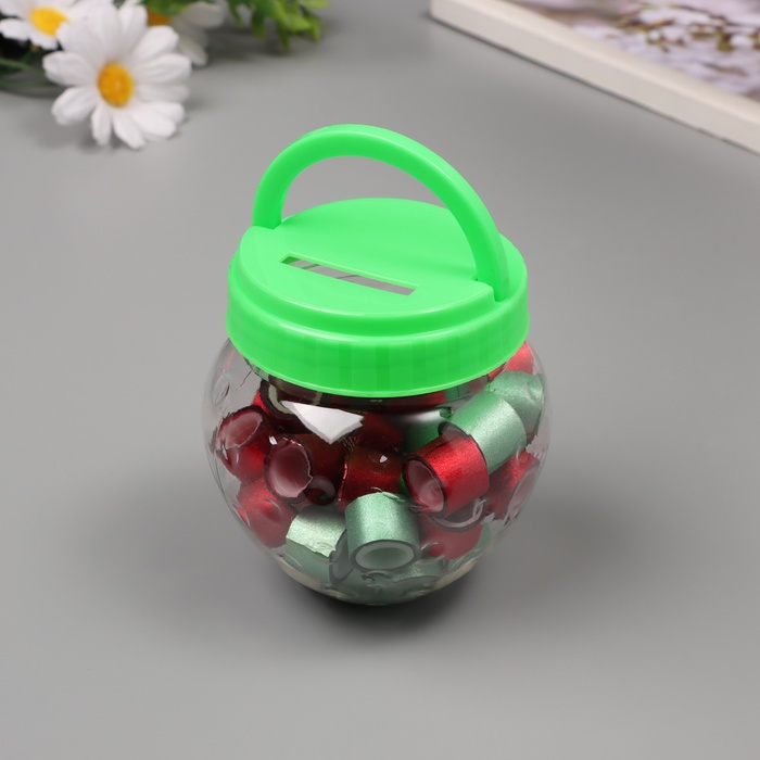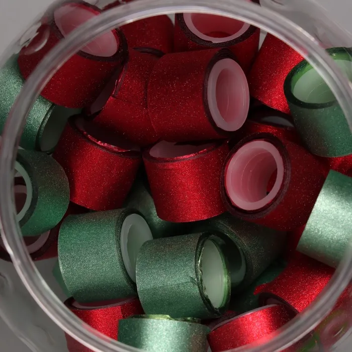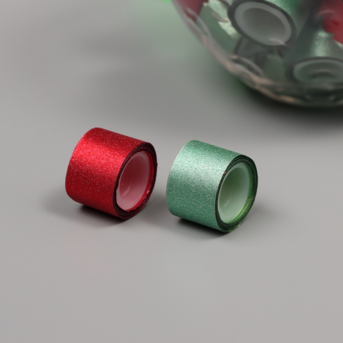 Клейкая лента пластик в банке «Глори. Красный, зелёный», набор 40 шт., 1.2 см, дл.0.9 м, 7×7×9 см