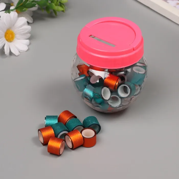 Клейкая лента пластик в банке «Глори. Оранж, морской», набор 40 шт., 1.2 см, дл.0.9 м, 7×7×9 см — Характеристики