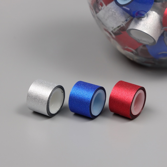Клейкая лента пластик в банке «Глори. Триколор», набор 40 шт., 1.2 см, дл.0.9 м, 7×7×9 см — Характеристики