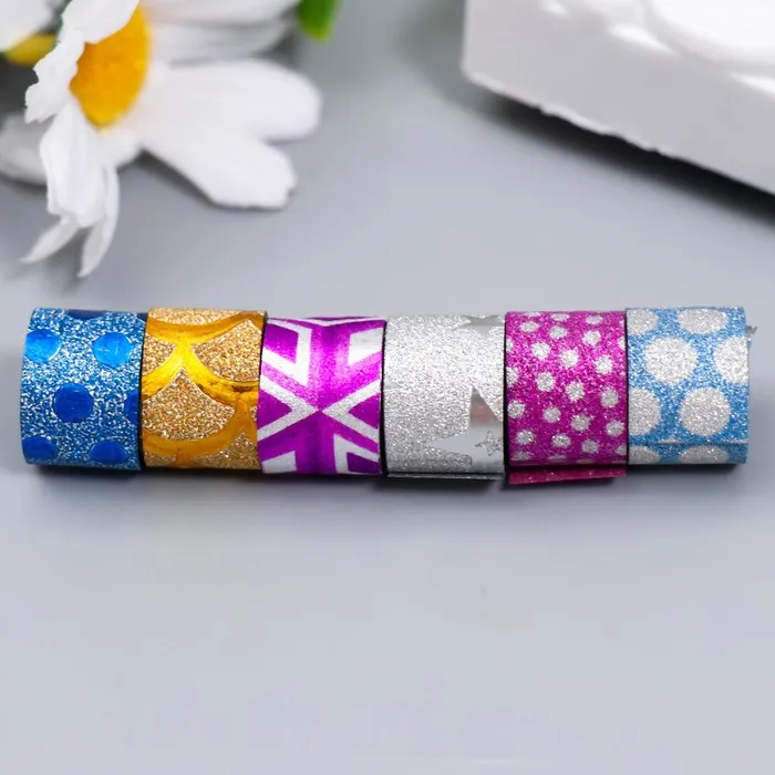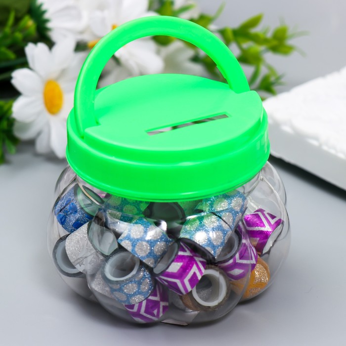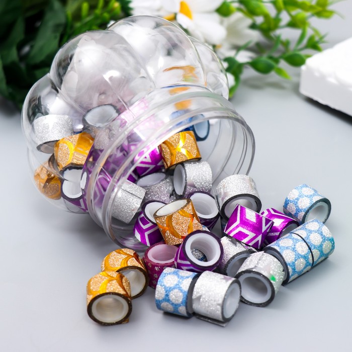 Клейкая лента пластик в банке медведь «Блеск с рисунками», набор 40 шт., 1.2 см×1 м, 7×8×8 см, МИКС — Характеристики