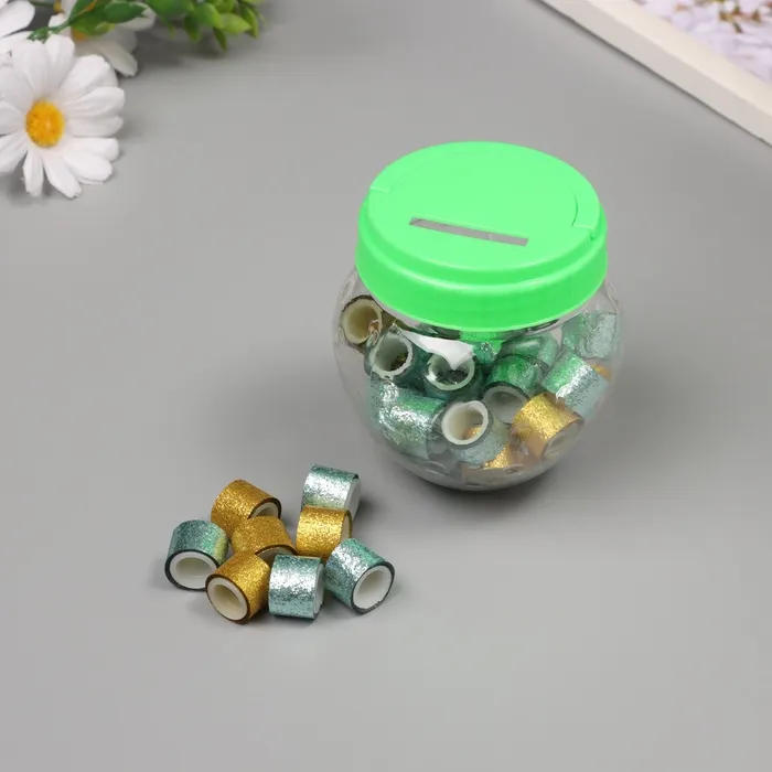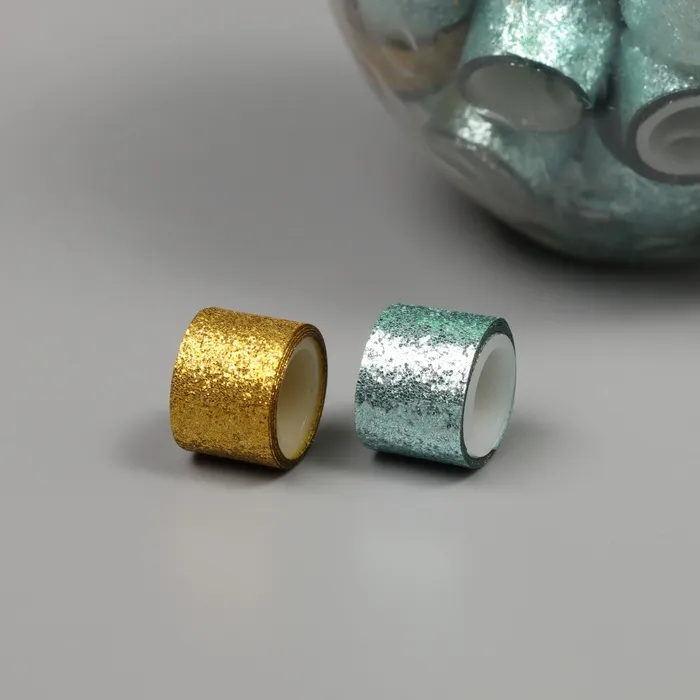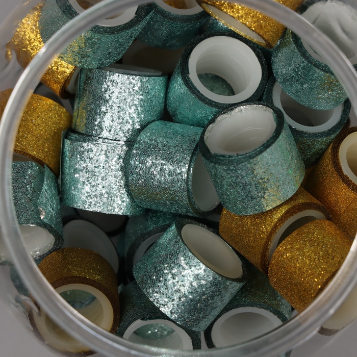 Клейкая лента пластик в банке «Шайн. Золото и голубой», набор 40 шт., 1.2 см, дл.0.9 м, 7×7×9 см — Характеристики