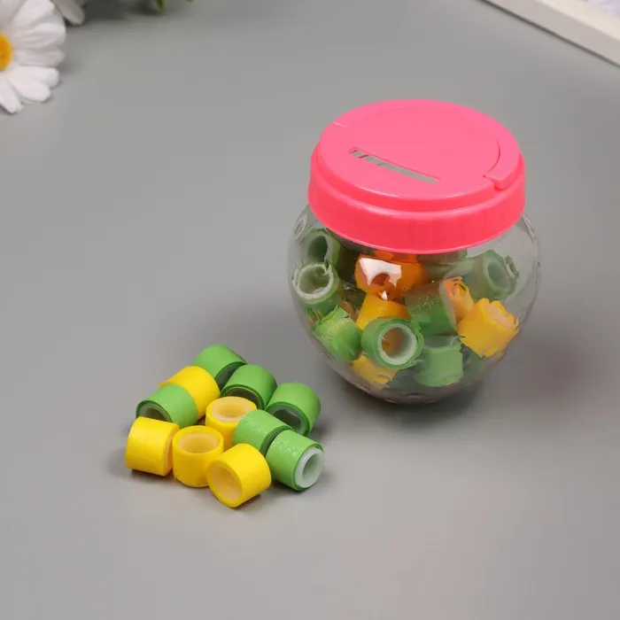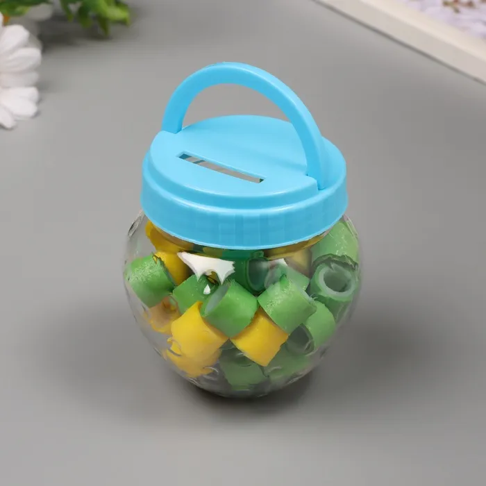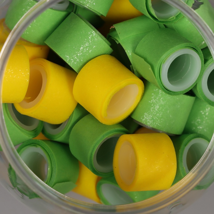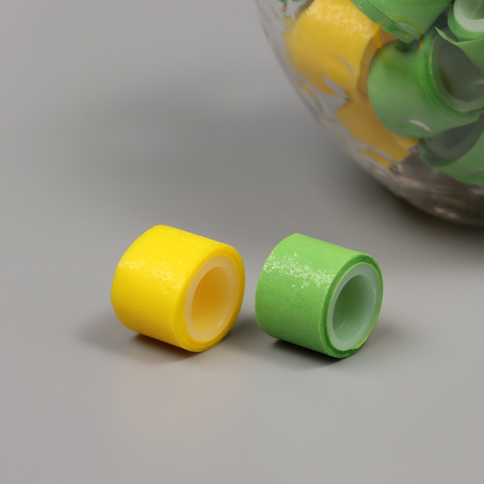 Клейкая лента пластик в банке «Зелёный и жёлтый», набор 40 шт., 1.2 см, дл. 0.9 м, 7×7×9 см — Характеристики