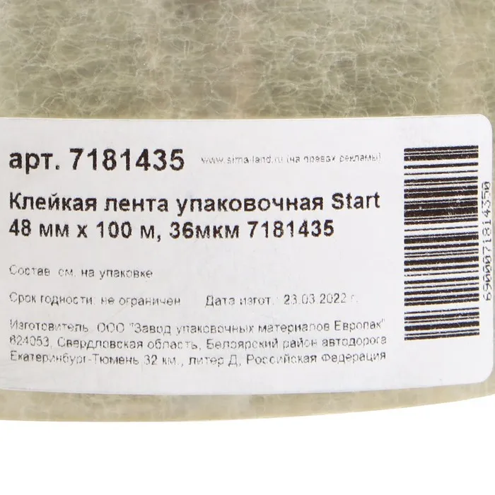 Клейкая лента Start, упаковочная, 48 мм х 100 м, 36 мкм — Характеристики