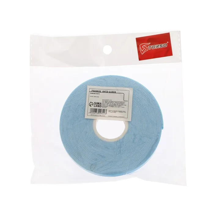 Клейкая лента TORSO, двусторонняя, вспененная, синий защитный слой, 8 мм x 5 м — Характеристики