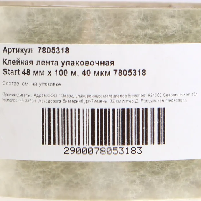 Клейкая лента упаковочная Start 48 мм × 100 м, 40 мкм — Характеристики