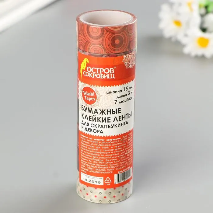 Клейкие WASHI-ленты для декора ОТТЕНКИ КРАСНОГО, 15 мм х 3 м (набор 7 шт) рисовая бумага — Характеристики