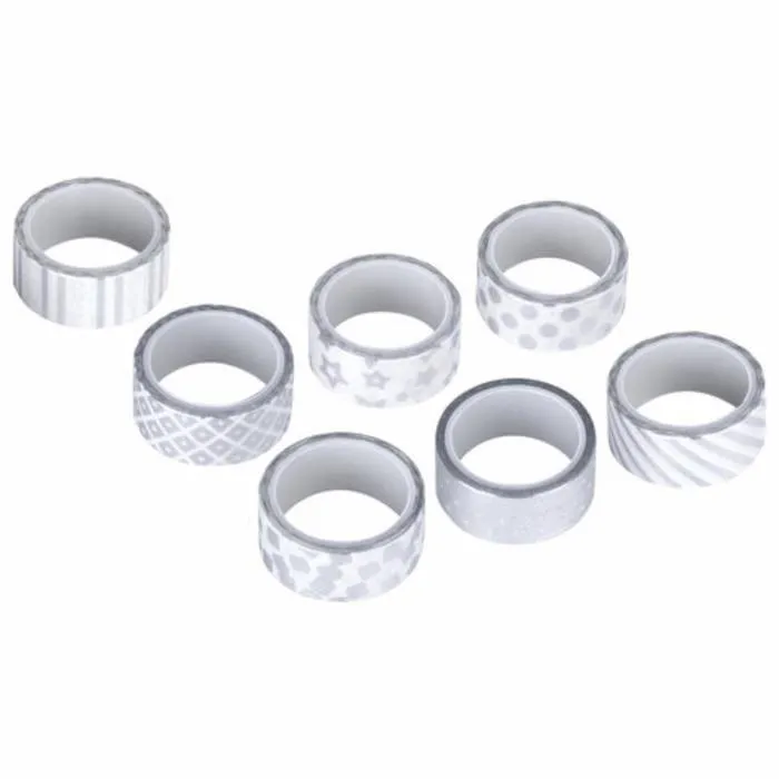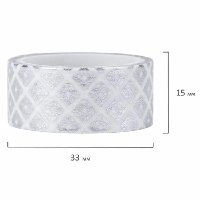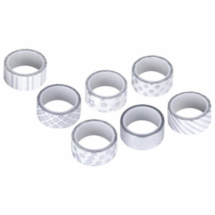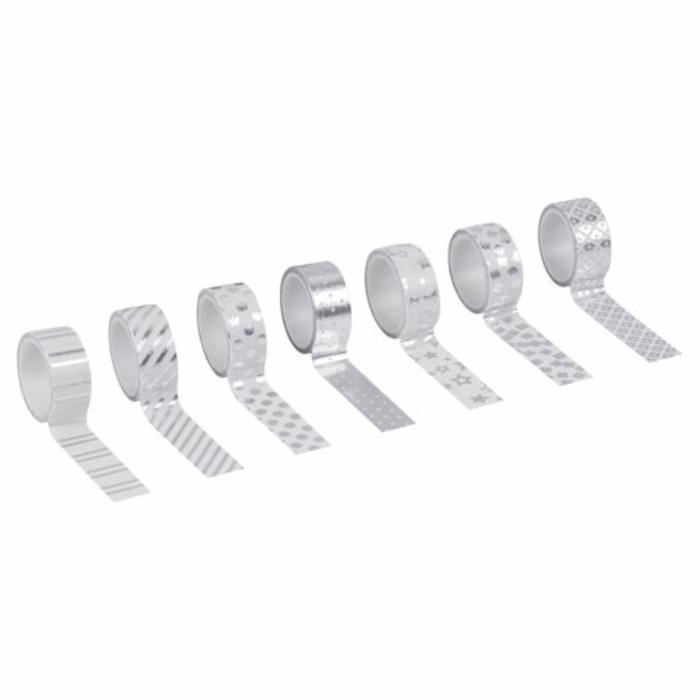 Клейкие WASHI-ленты для декора с фольгой СЕРЕБРИСТЫЕ,15 мм х 3 м (набор 7 шт) рисовая бумага — Характеристики