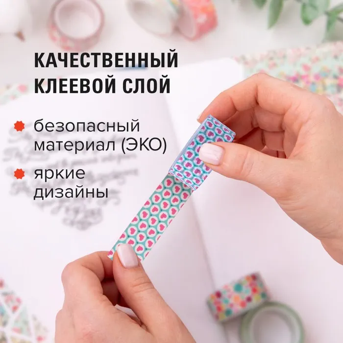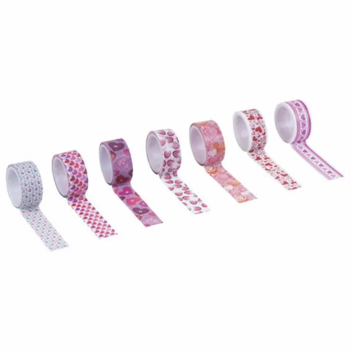 Клейкие WASHI-ленты для декора "СЕРДЦА", 15 мм х 3 м (набор 7 шт) рисовая бумага — Характеристики