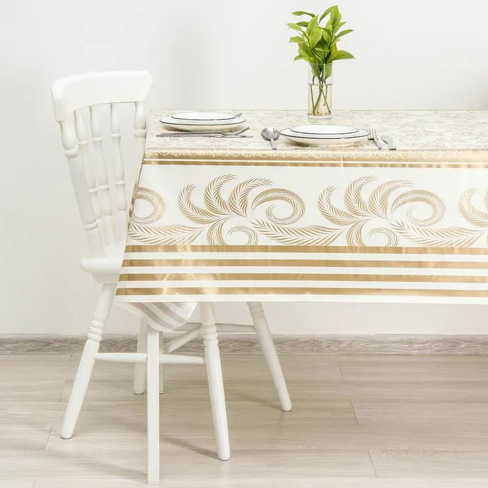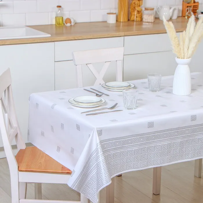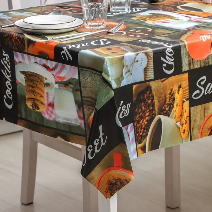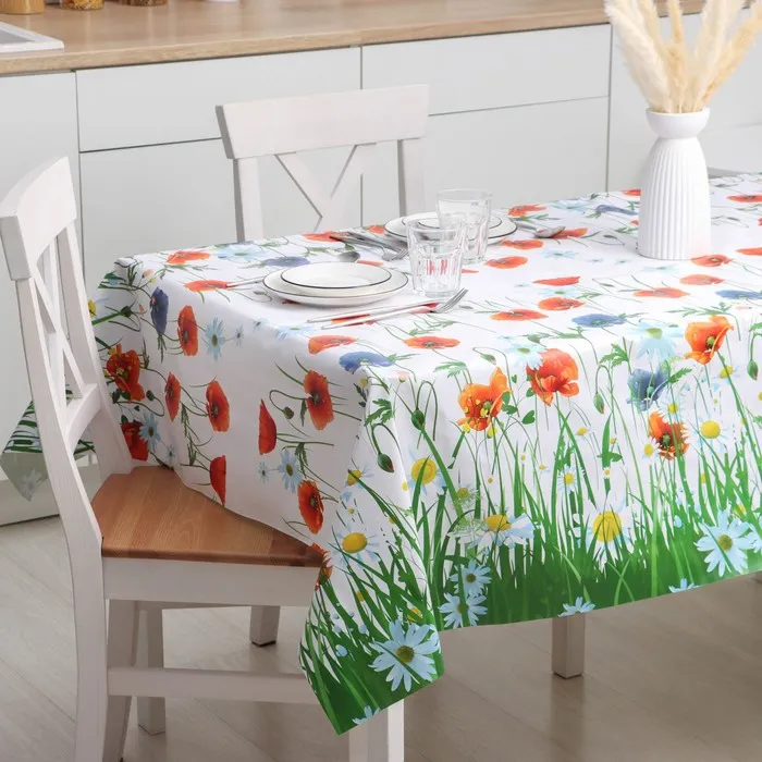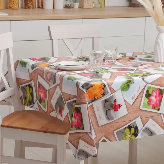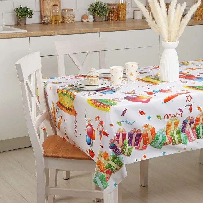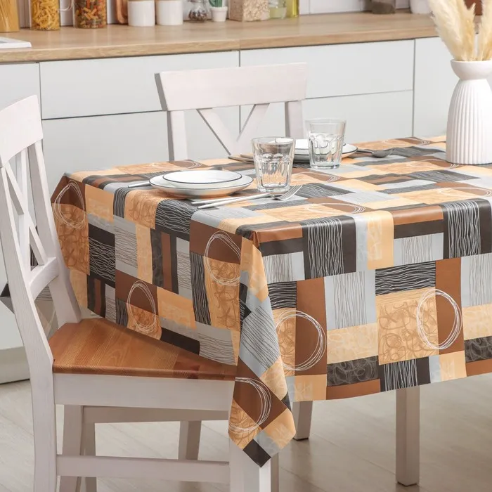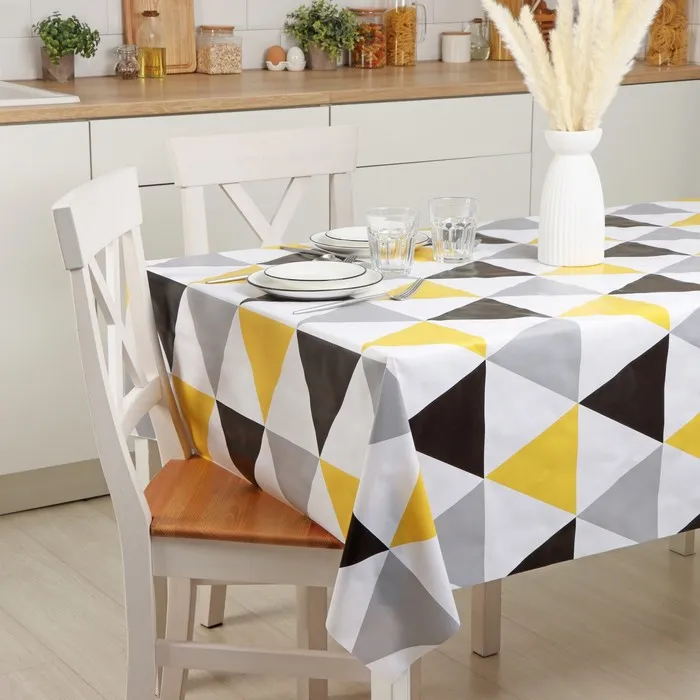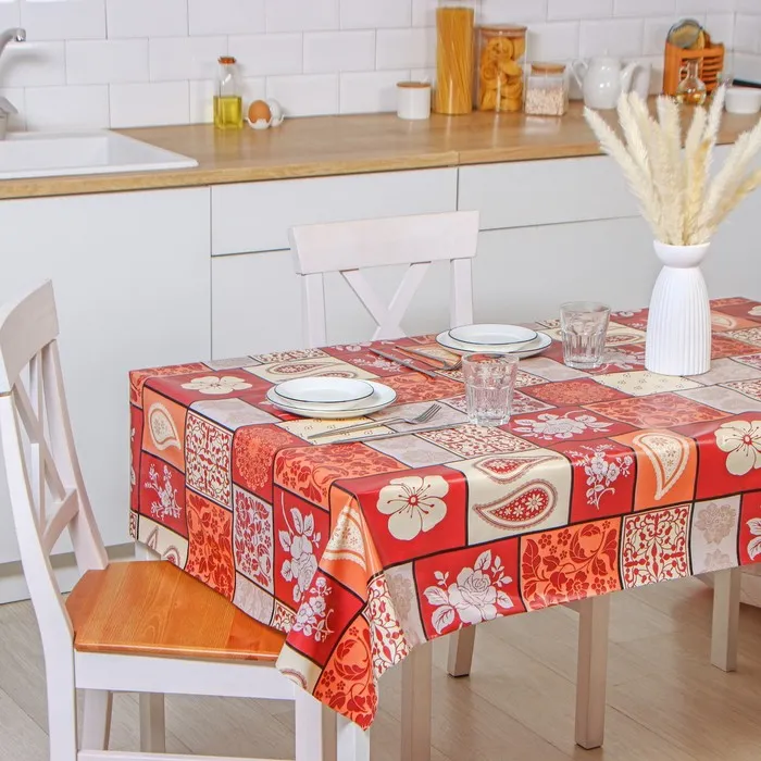 Один из самых простых и действенных способов – покрыть на стол красивой скатертью или клеёнкой. Практичное изделие на основе ПВХ разнообразит интерьер благодаря красочному узору, который, при условии правильной эксплуатации, не сотрётся с течением времени.