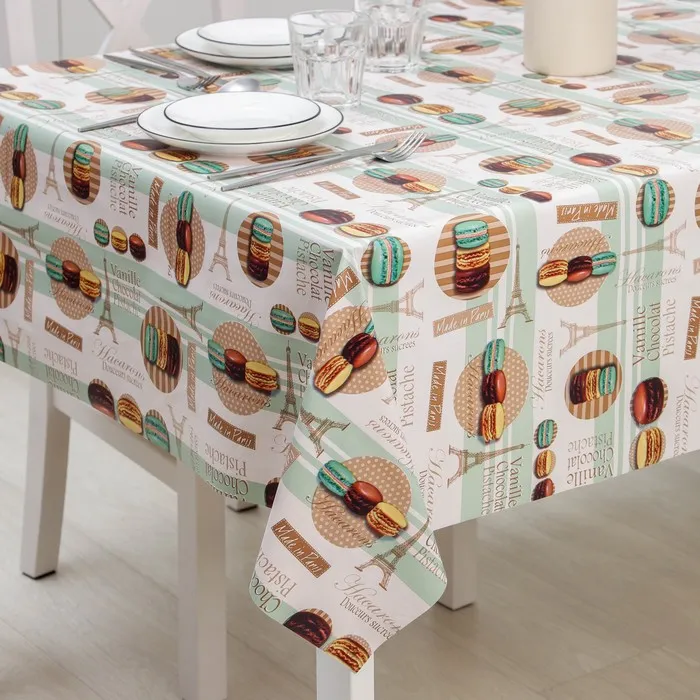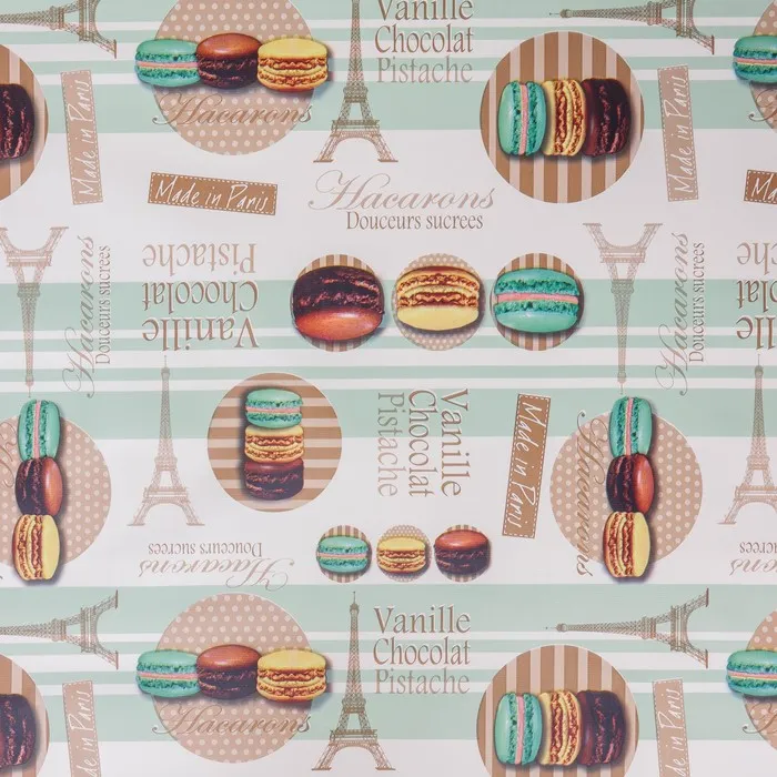 Клеёнка на тканевой основе «Макаруны» в 3–4 раза прочнее обычных аналогов. Такой материал не мнётся и не деформируется. ПВХ-основа делает клеёнку максимально простой в уходе. Любая грязь устраняется быстро: с помощью простой влажной тряпочки вы без особых усилий приведёте стол в порядок.