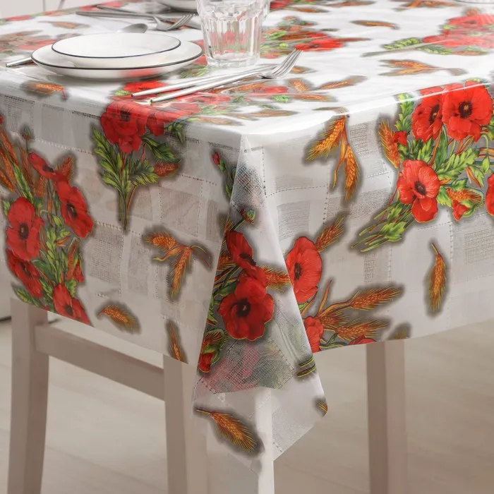 Клеёнка на стол Доляна «Маки», ширина 137 см, толщина 0.08 мм, рулон 30 м
