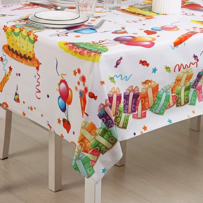Один из самых простых и действенных способов – покрыть на стол красивой скатертью или клеёнкой. Практичное изделие на основе ПВХ разнообразит интерьер благодаря красочному узору, который, при условии правильной эксплуатации, не сотрётся с течением времени.