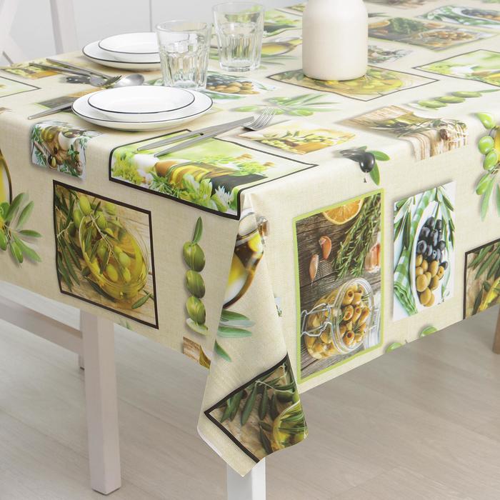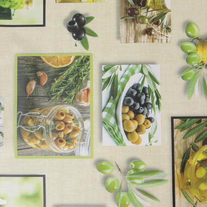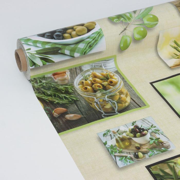 Клеёнка на стол Доляна «Оливки», на тканевой основе, рулон 20 м, ширина 137 см, общая толщина 0.22 мм, зелёная