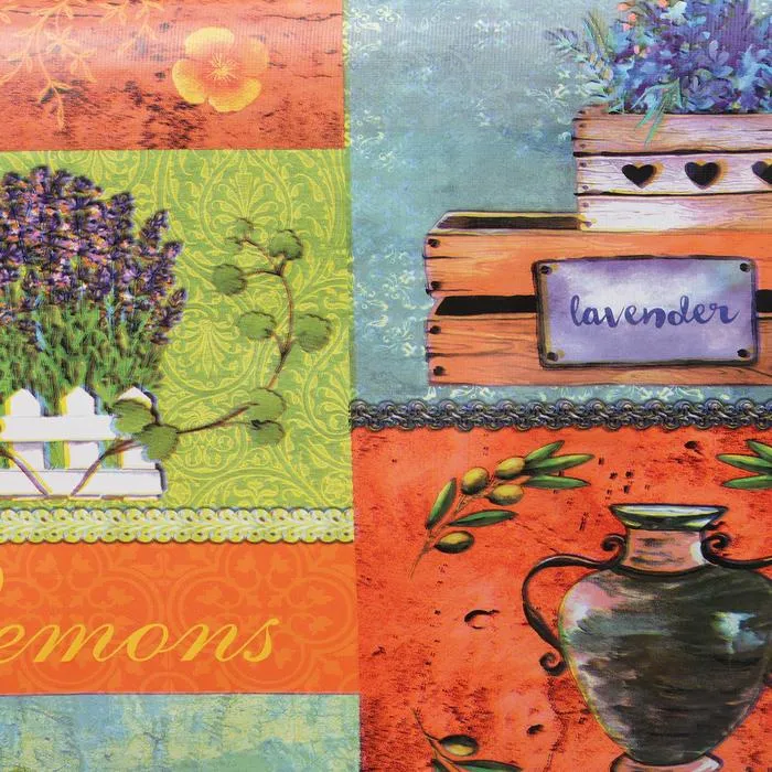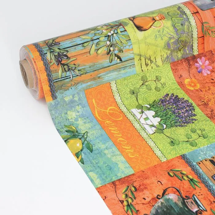 Клеёнка на тканевой основе «Прованс» в 3–4 раза прочнее обычных аналогов. Такой материал не мнётся и не деформируется. ПВХ-основа делает клеёнку максимально простой в уходе. Любая грязь устраняется быстро: с помощью простой влажной тряпочки вы без особых усилий приведёте стол в порядок.