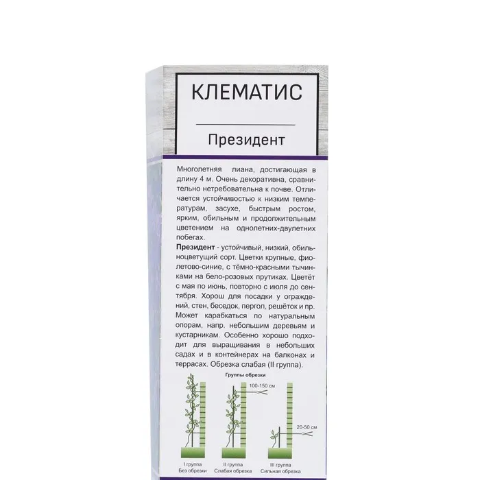 Клематис крупноцветковый «Президент», туба, 1 шт. — Характеристики